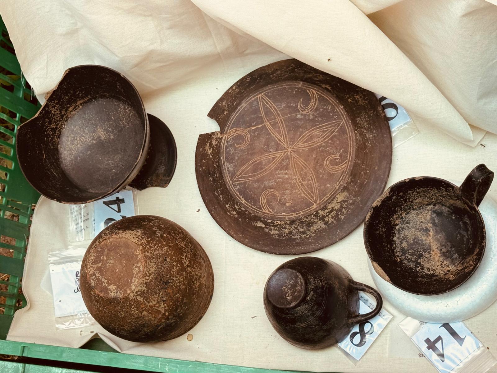 Il corredo, allo stato attuale, comprende circa 75 vasi ceramici finemente decorati, un bacile in bronzo, 10 fibule in bronzo e 2 in ferro, 2 punte di lancia in ferro, 2 fermatrecce in argento, un copricapo in cuoio, una fuseruola e perle in pasta vitrea. Questi ornamenti rituali – il cui numero è in costante aggiornamento man mano che proseguono gli scavi – offrono preziose testimonianze sul mondo funerario etrusco.